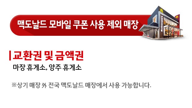 ※ 상기 매장 외 전국 맥도날드 매장에서 모바일 쿠폰 사용 가능합니다.