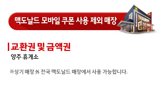 교환권 및 금액권 사용 제외 맥도날드 매장